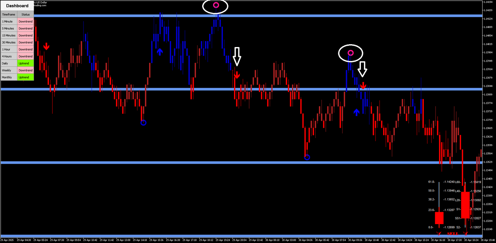 5. Fibopivot Candle Bar + Setas: Sinalização Visual