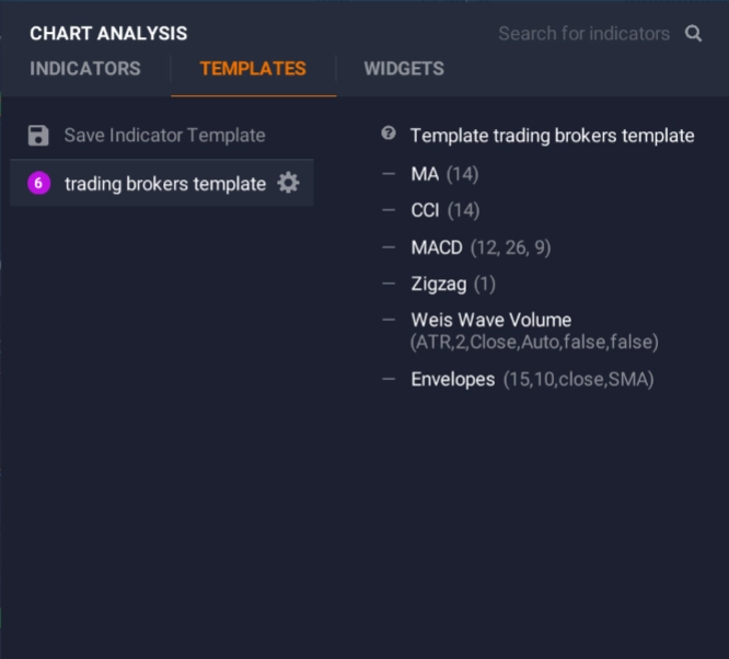 Os indicadores podem ser facilmente adicionados e removidos dos gráficos com apenas alguns cliques, com cada indicador tendo uma descrição e a capacidade de ajustar os valores de entrada para se adequar à sua estratégia de negociação.